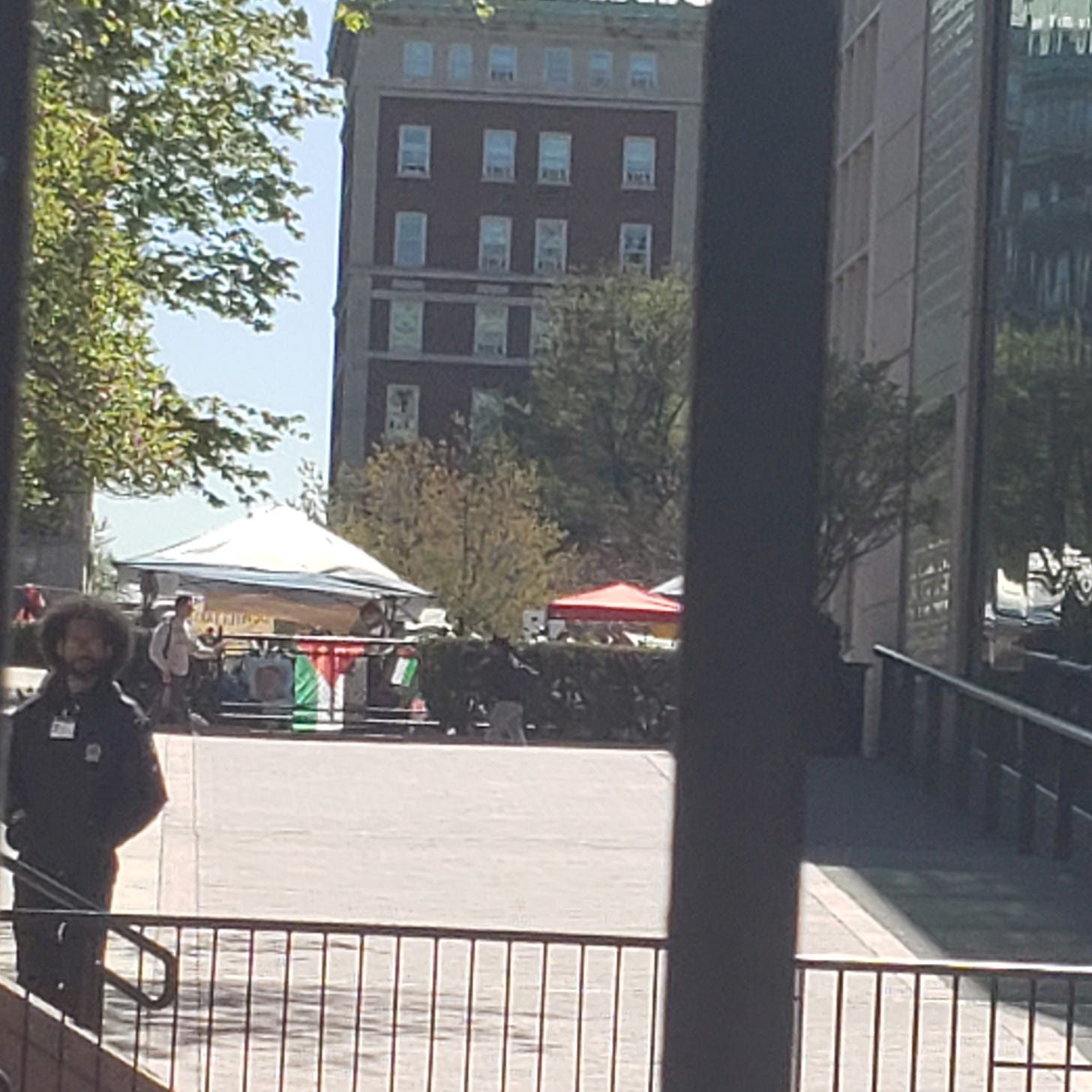 The police showed preference for neither side, asking both pro- and anti-Israel protesters to not cause trouble and to not obstruct the campus. Columbia University is still, after all, a university of tens of thousands. The sit-ins that have provoked so much controversy were behind the university gates. I could only see from the outside a large Palestinian flag draped over a gate and numerous canopies and tents. Every entrance to the university was closed; security was checking the ID of anyone entering.